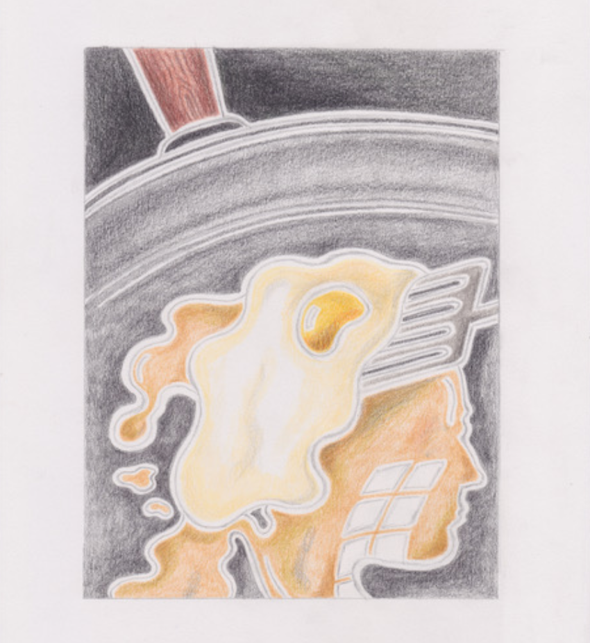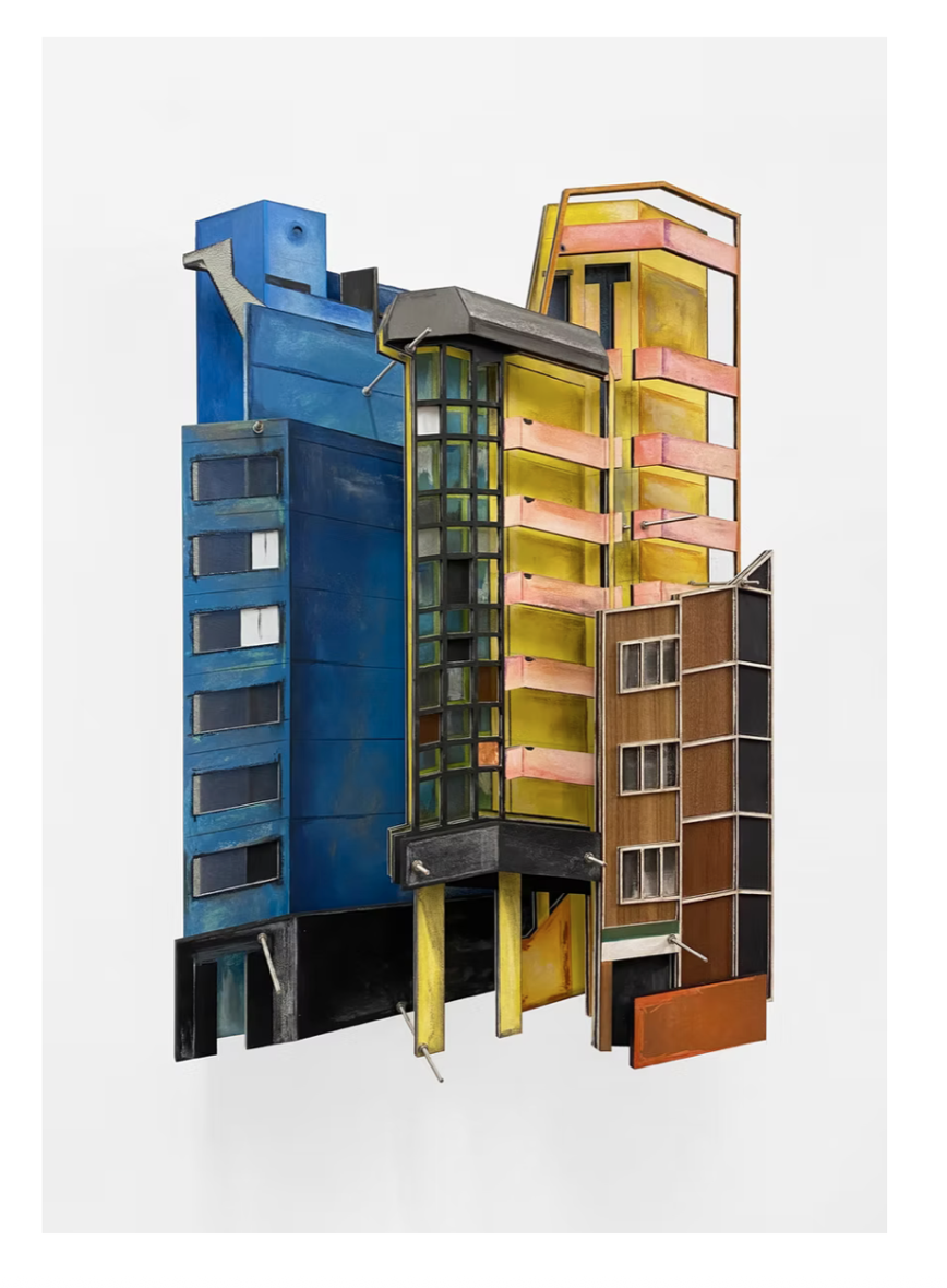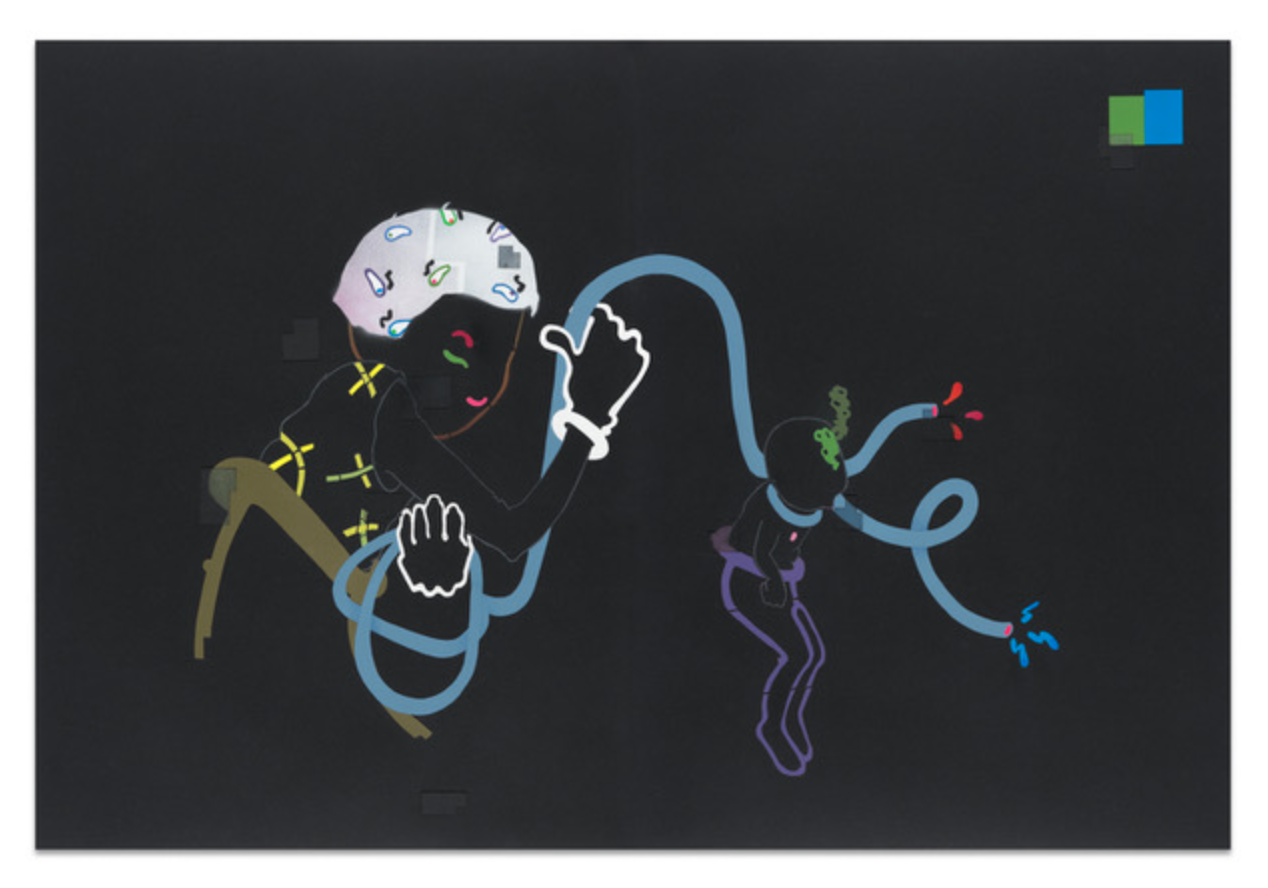 Stencil drawing, collage & coloured pencil on paper