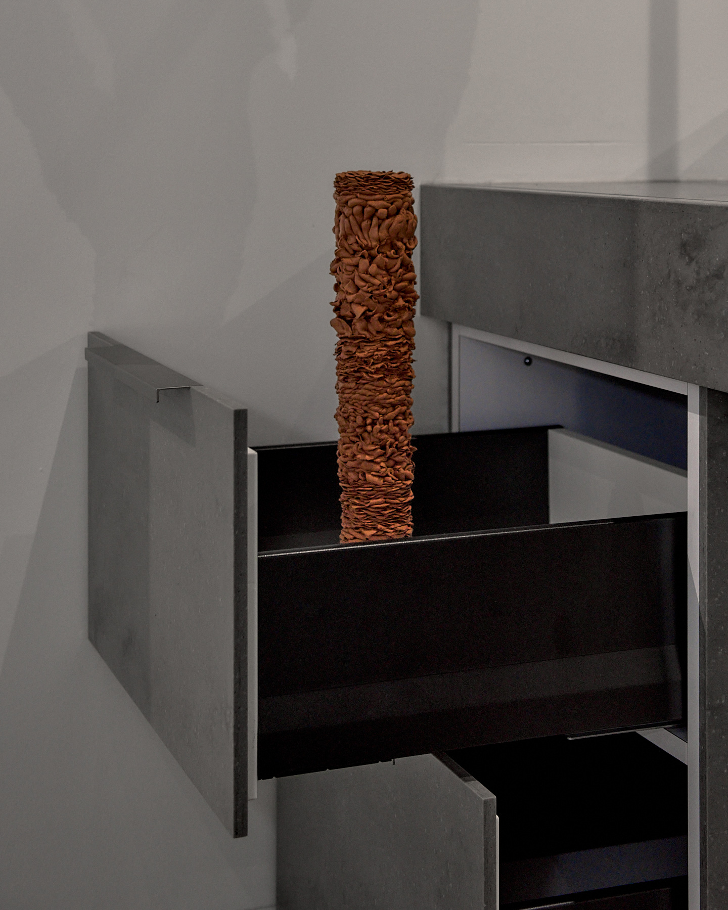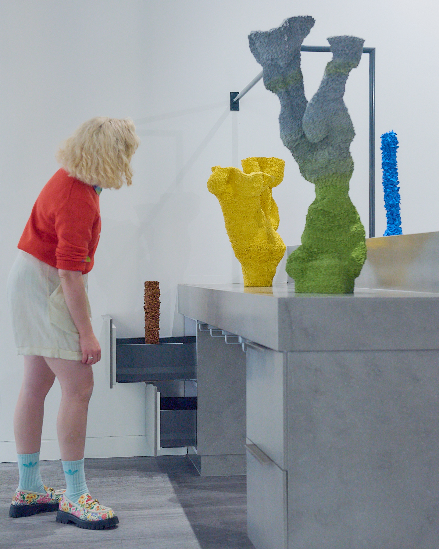 experience of material forms and re-appraising object performativity. ‘Material Actors’ explores the tipping point of formal representation into the theatrical and cinematic world of mimicry and artifice. When does play-acting become real? Can crocodile tears gain sincerity?