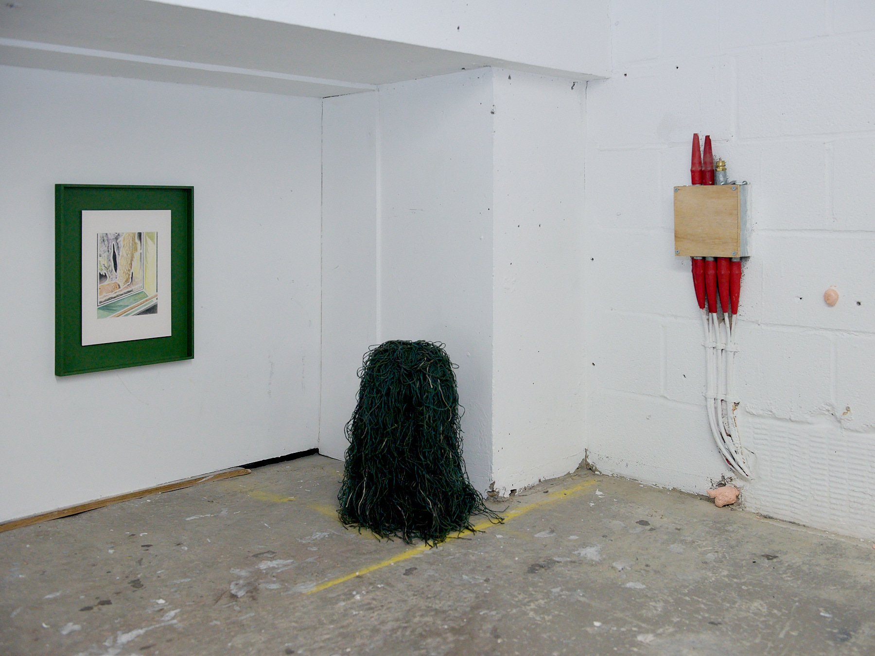 Glitter glue, found cardboard, string, gaffer tape, plaster, scrim, plaster bandage, paint