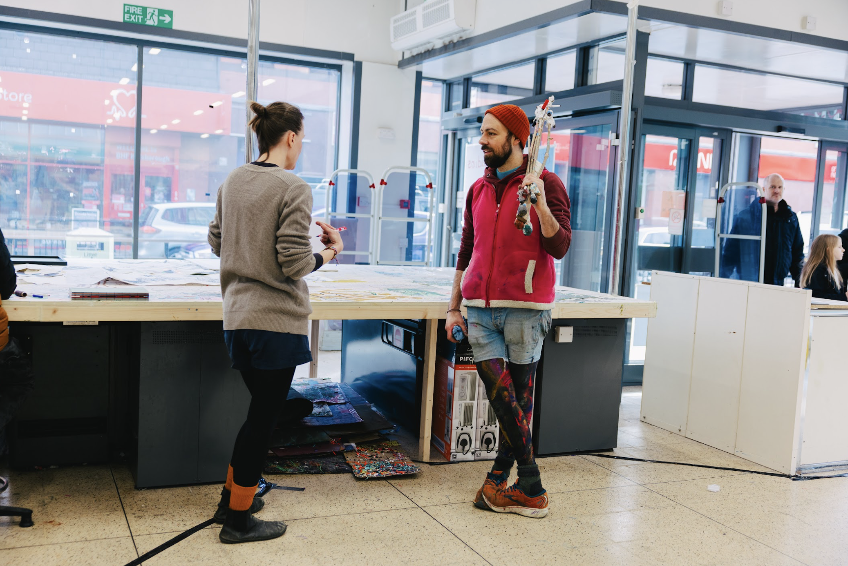‘The Drawing Shop’ is an inclusive and accessible open-studio environment where the public are invited to engage in free creative sessions with ‘The Drawing Shop’ team, and everyone is welcome! They currently operate on a pop-up basis moving from space to space, and this time they are in Hillsborough and have taken over the old Wilkos.