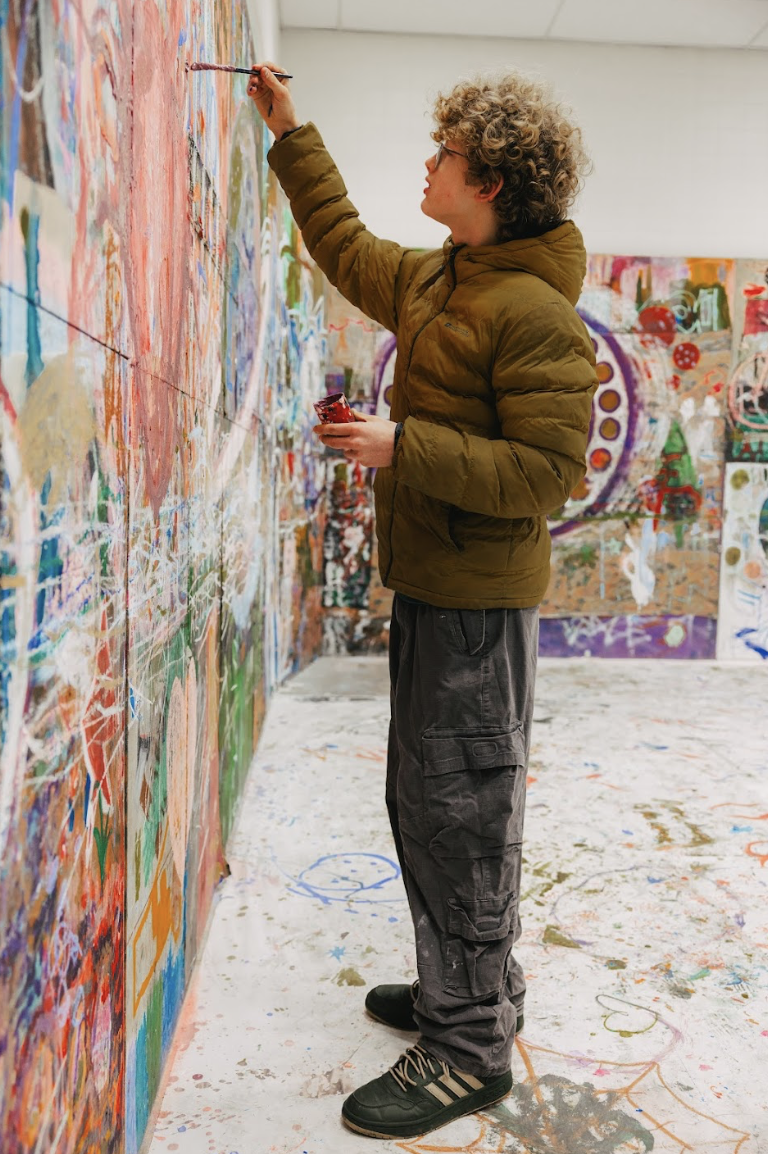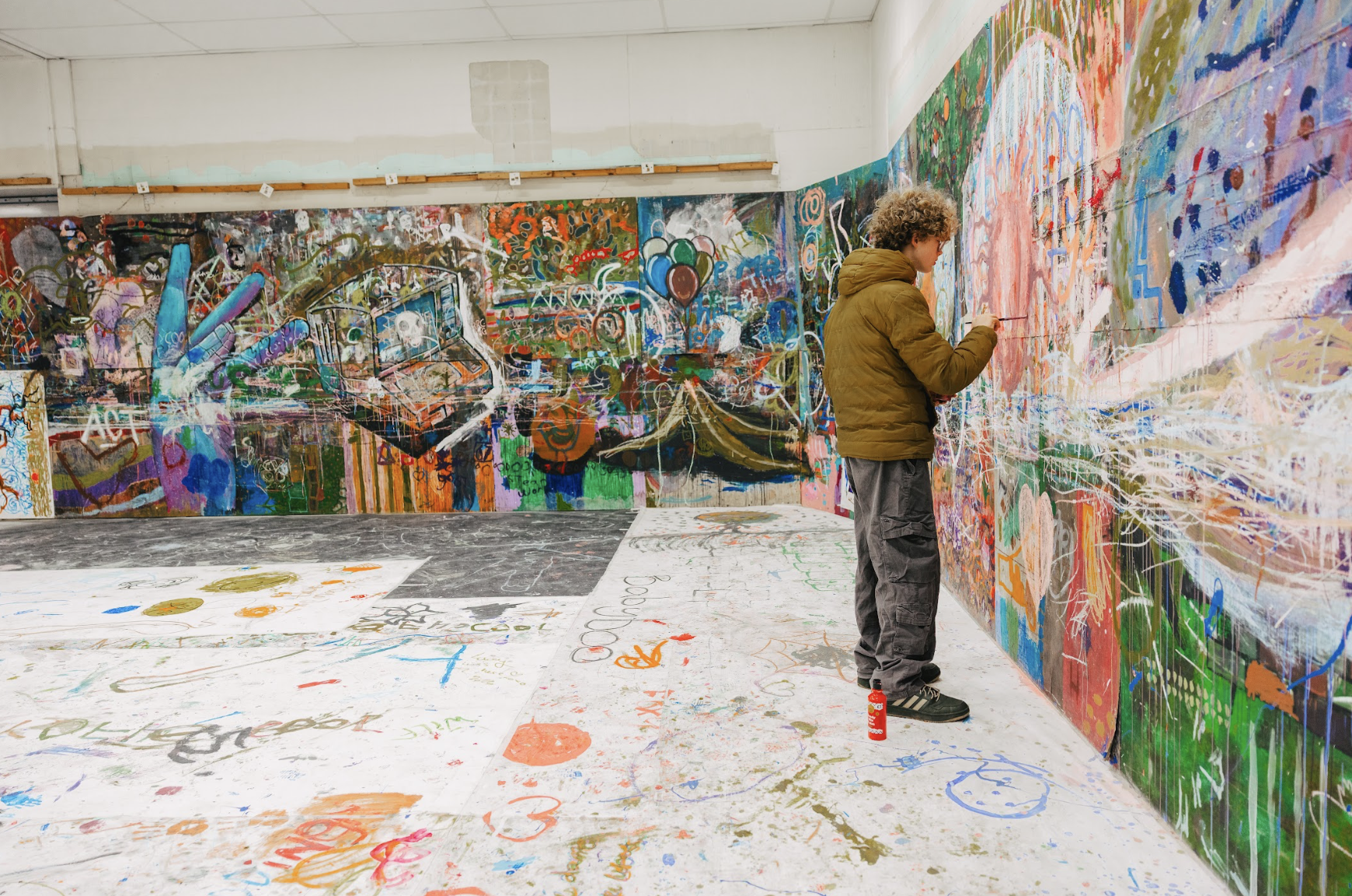 All the paintings and drawings have been made in the space, using a detail as a starting point, from the world of mark making that floods the shop. Some artists have responded directly, drawing onto the same surface as their chosen detail – some have chosen to create new works, but all have explored a wide range of processes and media. There are no restrictions on the approaches the artists use, and it is left open to each individual to create their own journey and response through the space.