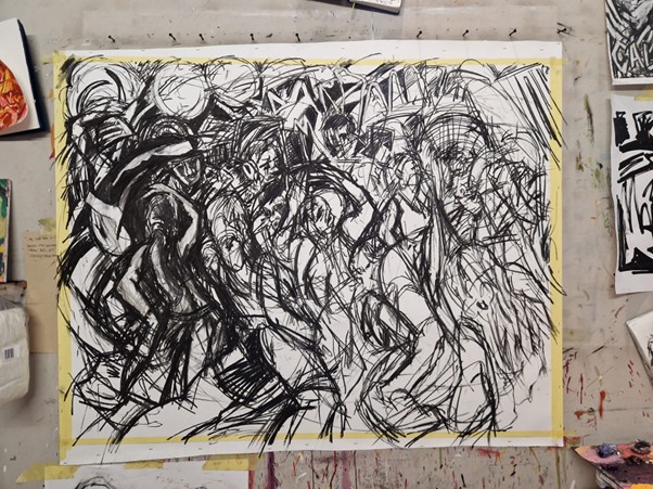 Sketch for Barbican, 2025, Charcoal on paper, 841 x 594 mm