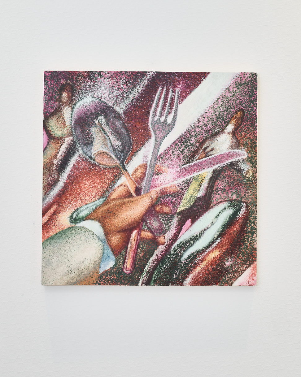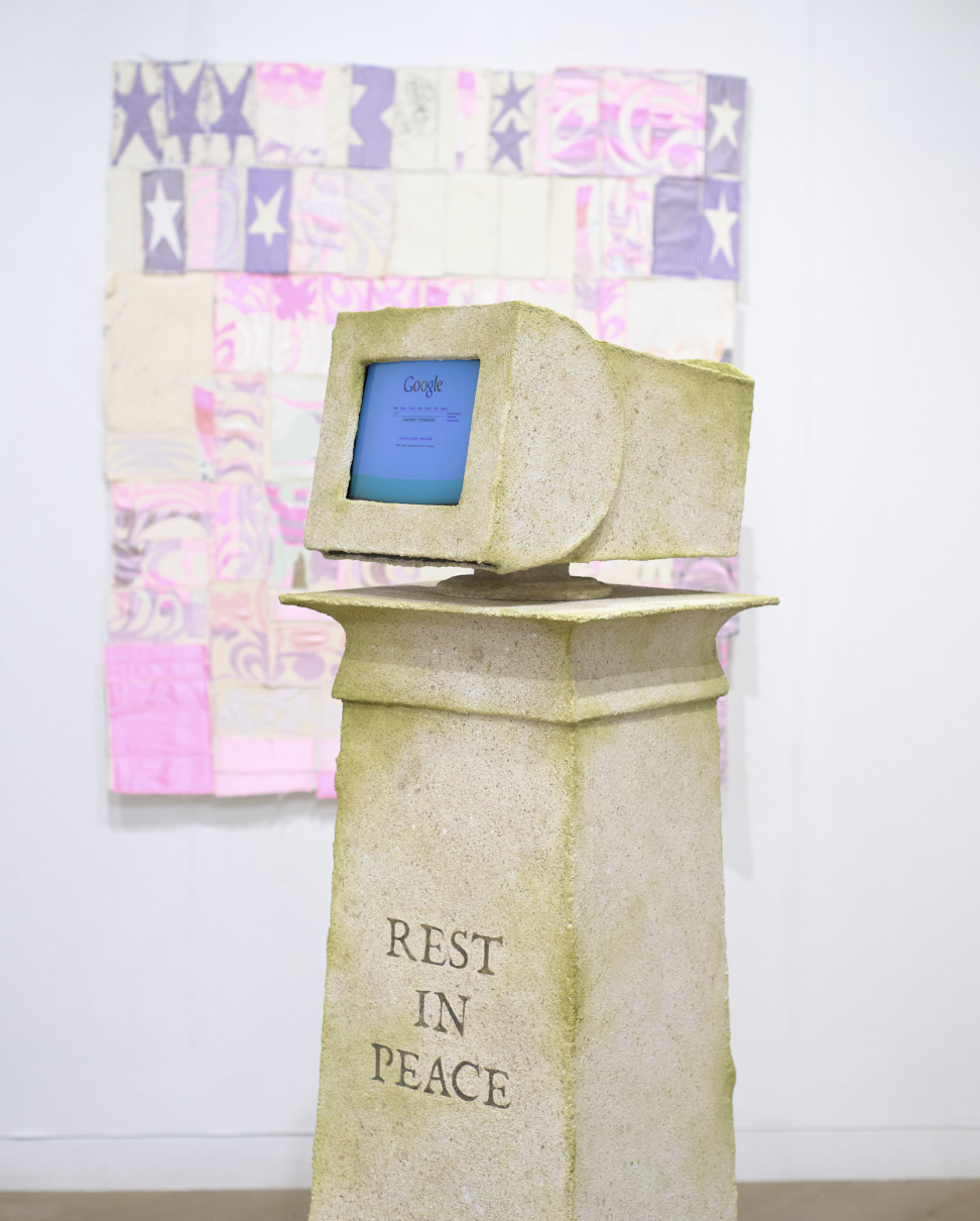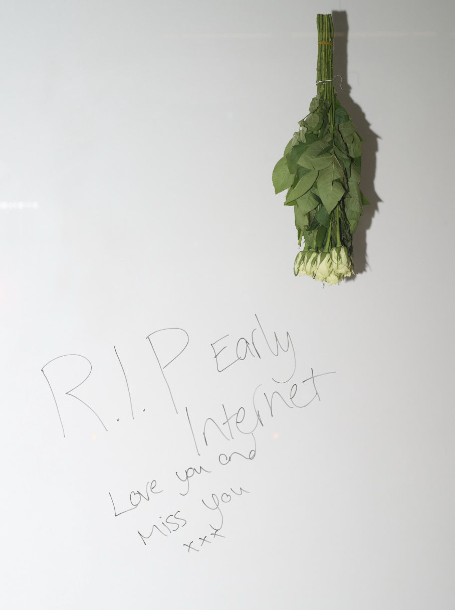 Spanning contemporary painting, drawing, sculpture and installation, INTERNET CAFE invites us to reflect upon how new media has accelerated the disappearance of social and cultural customs associated with hand-held technology. Looking back at the gadgets and gizmos of the new millennium, the work by selected artists dives deep into the current wave of ‘Y2K’ nostalgia and poses probing questions about our now digitally-centred epoch. The visual and conceptual narrative of the exhibition reveals themes of care, personal identity and agency, highlighting how shifts in technology play a crucial role in our relationship to self and others.