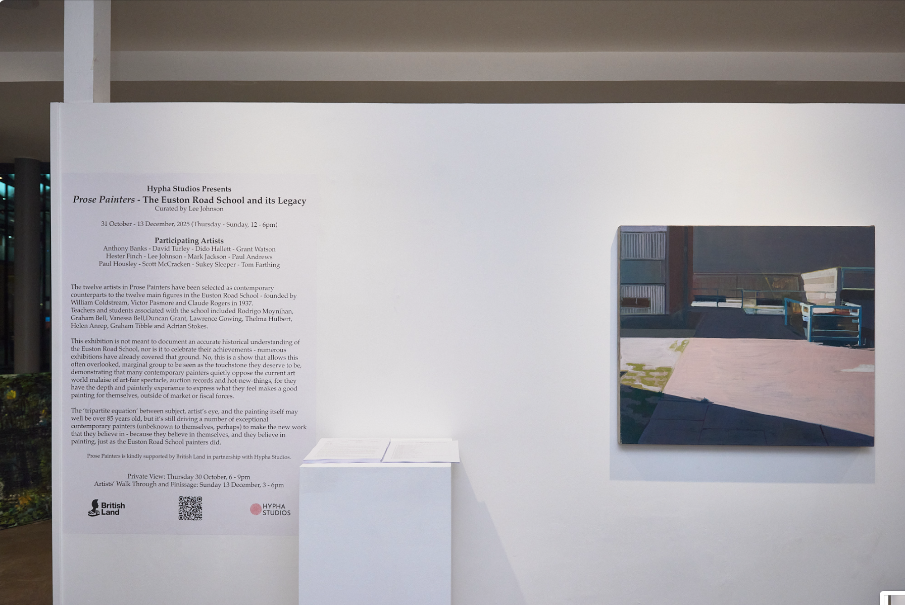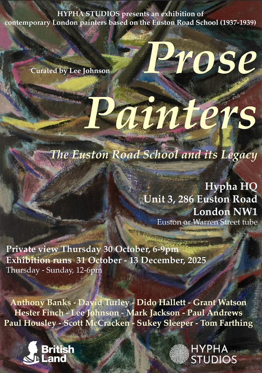 The twelve artists in Prose Painters have been selected as contemporary counterparts to the twelve main figures in the Euston Road School – founded by William Coldstream, Victor Pasmore and Claude Rogers in 1937.