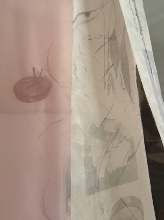 Detail of screen print installation in development, 2025