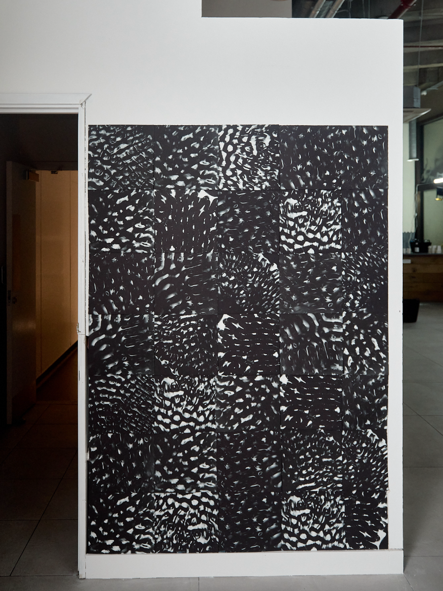Detail of screen print installation in development, 2025