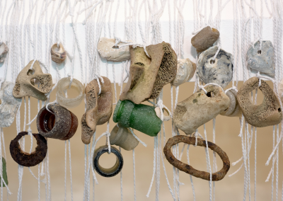Messages from a Silent River is a multi-disciplinary exhibition inspired by the lost course of the Walbrook River — once an open waterway in Roman London and now a silent presence beneath The City. The theme provides a lens for the artists of the Ground Collective to explore a range of ideas, from the city’s forgotten past to the urgent realities of the global climate crisis. The exhibition weaves together sculpture, painting, installation, printmaking and video, and is informed by walks taken in the area led by artist and mudlarker Mark Sowden, whose deep knowledge of artefacts found along the Thames foreshore inspired many of the artists’ research.