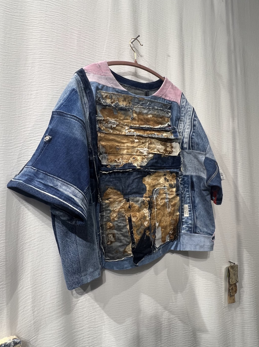 Dehydrated Denim Grown Mycelium Composite Object,