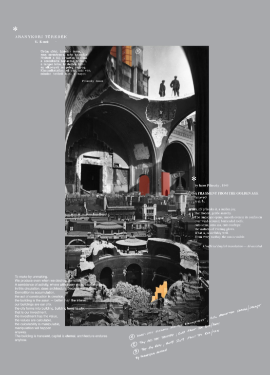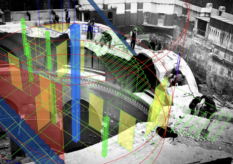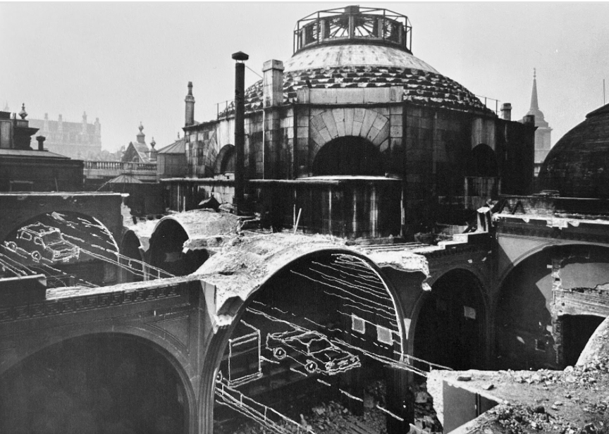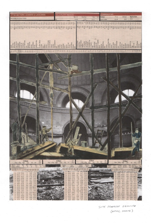 • Responses by international architects to documentary photographs of the real ruination of Soane’s Bank of England, demolished 1925 to 1939. Dreams of reconstruction creating alternative forms value. Ruins not as ending but as a beginning.